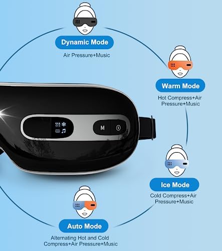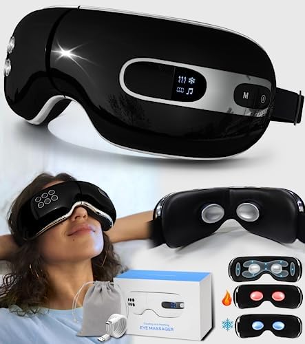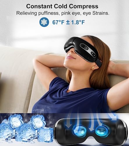 BOQUBOO Eye Massager with Heat and Cooling for Migraines, Dry Eyes, and Eyestrain – Heated Eye Massager Mask Massage Pressure Points for Relaxation – Gifts for Women and Men (Black)